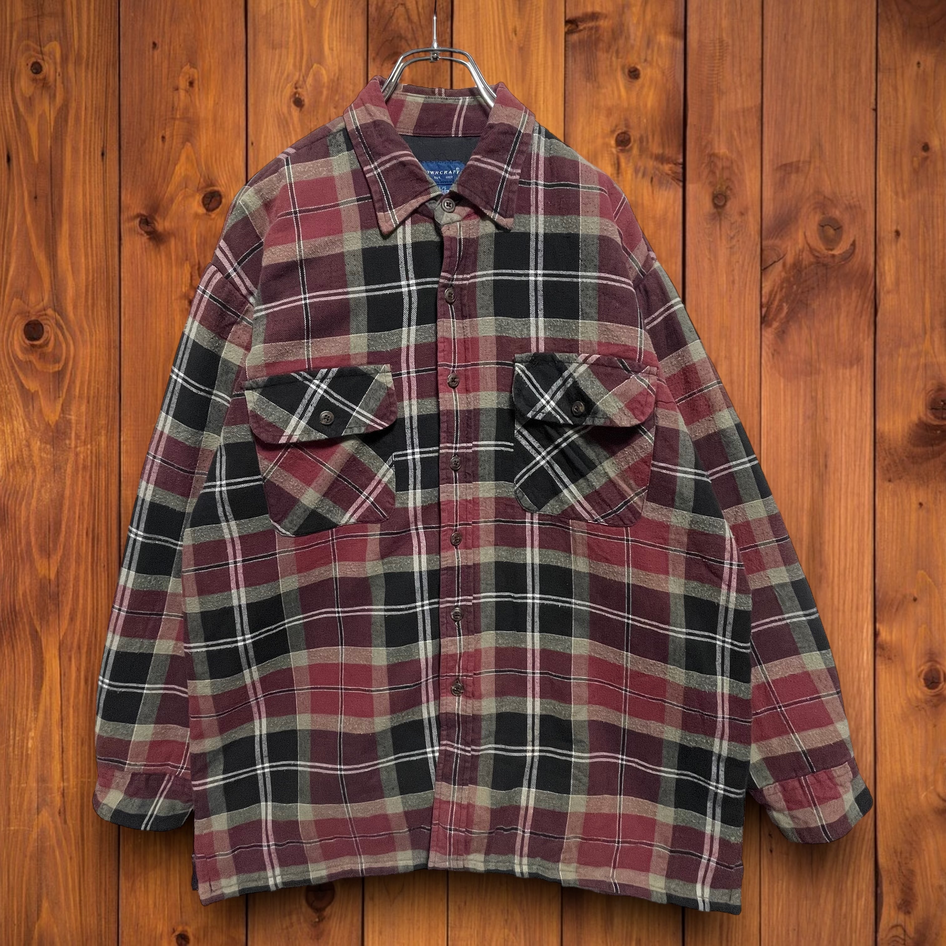 TOWN CRAFTタウンクラフト 80s 裏キルティング ネルシャツ ジャケット ボルドーチェック L