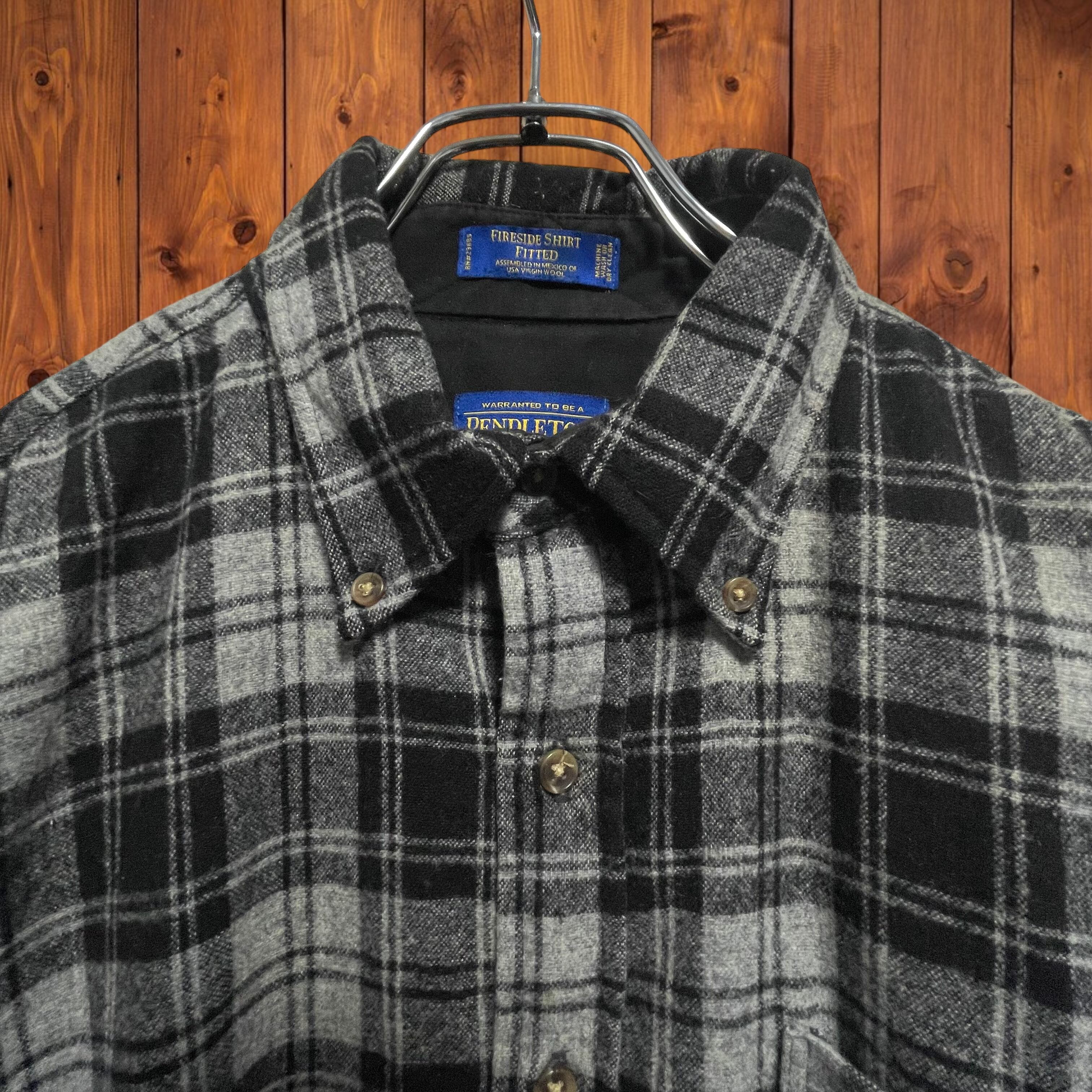 PENDLETONペンドルトン パッチロゴ ネルシャツ チェック柄 ブラック グレー M