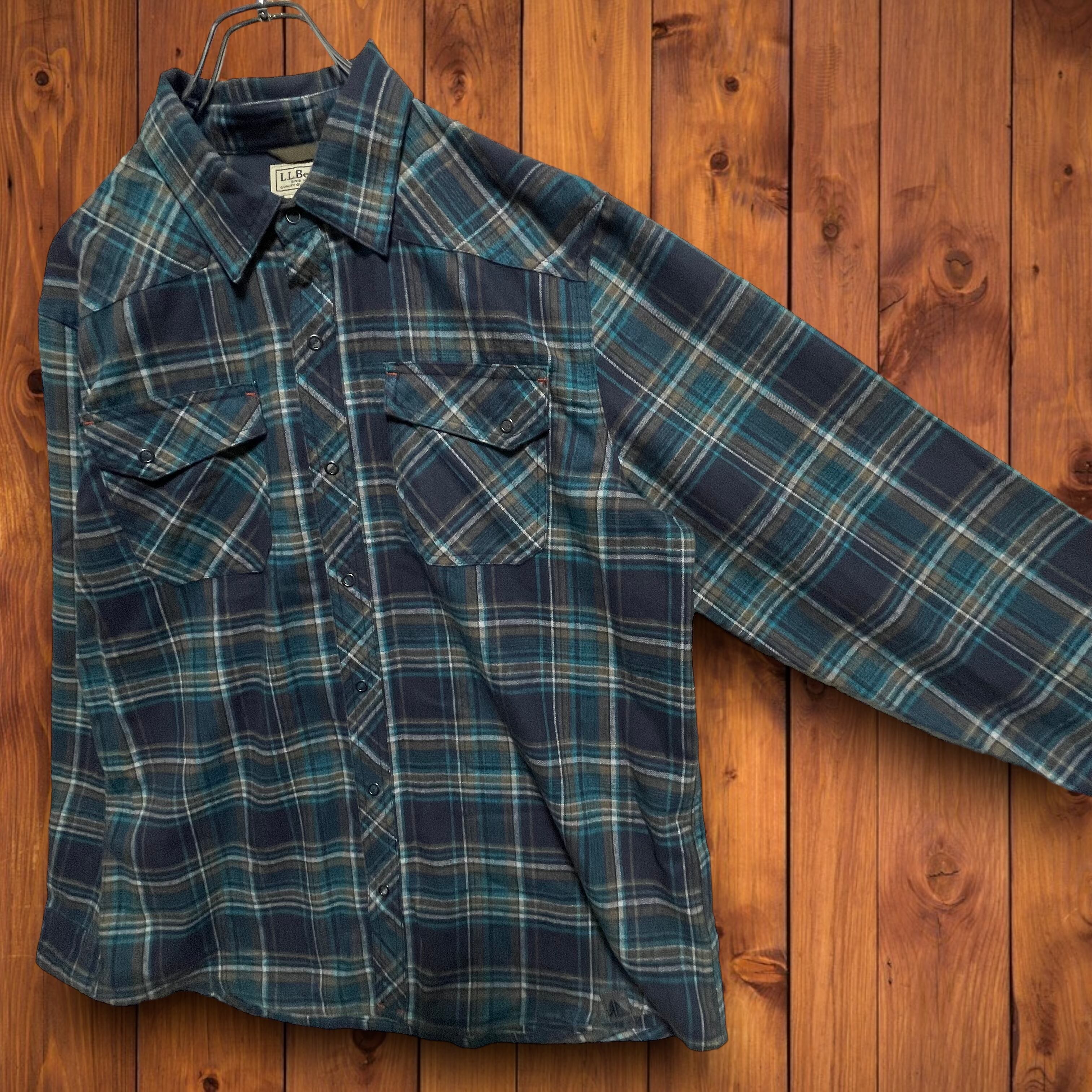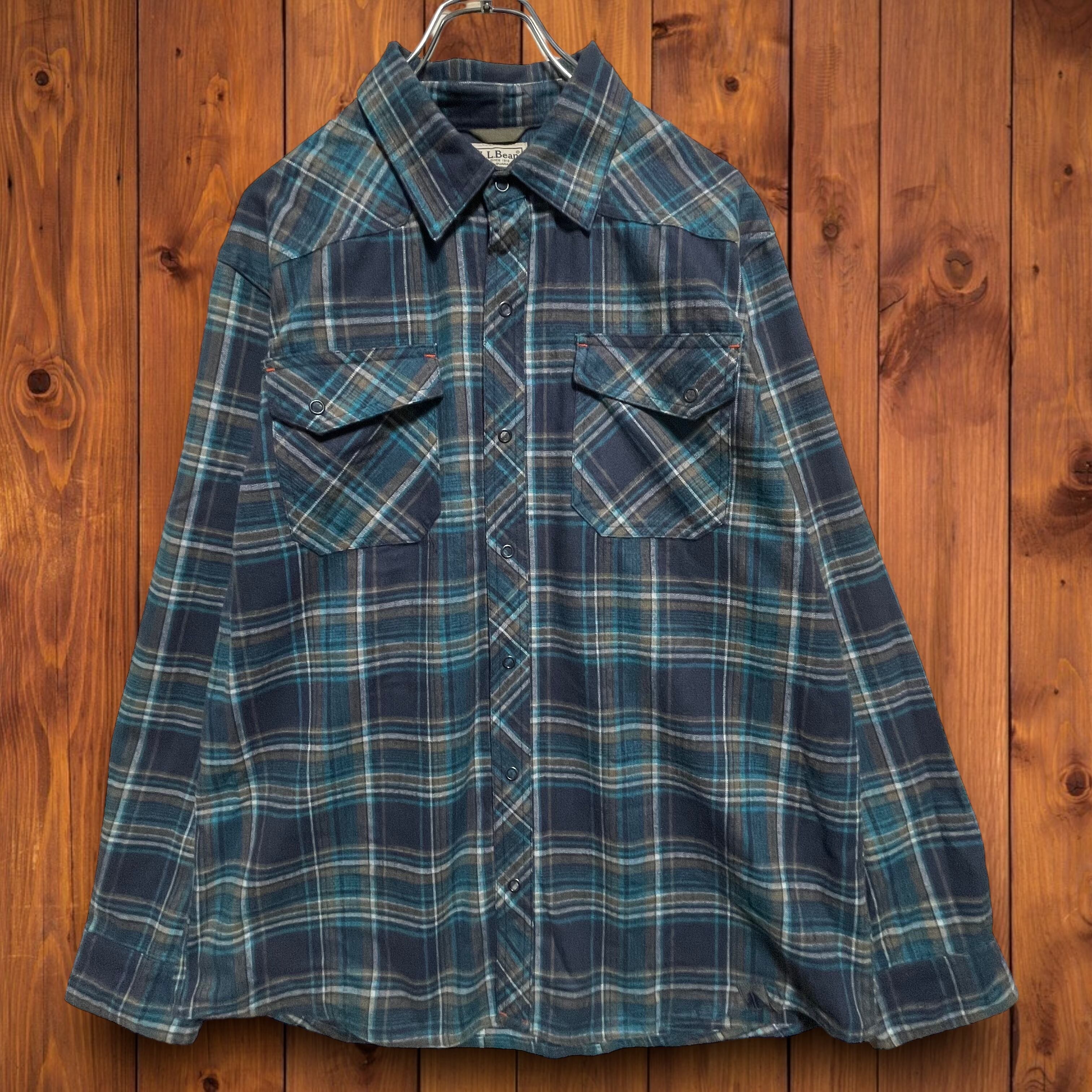 L.L.BEANエルエルビーン エルボーパッチ ウエスタンシャツ チェック グリーン L
