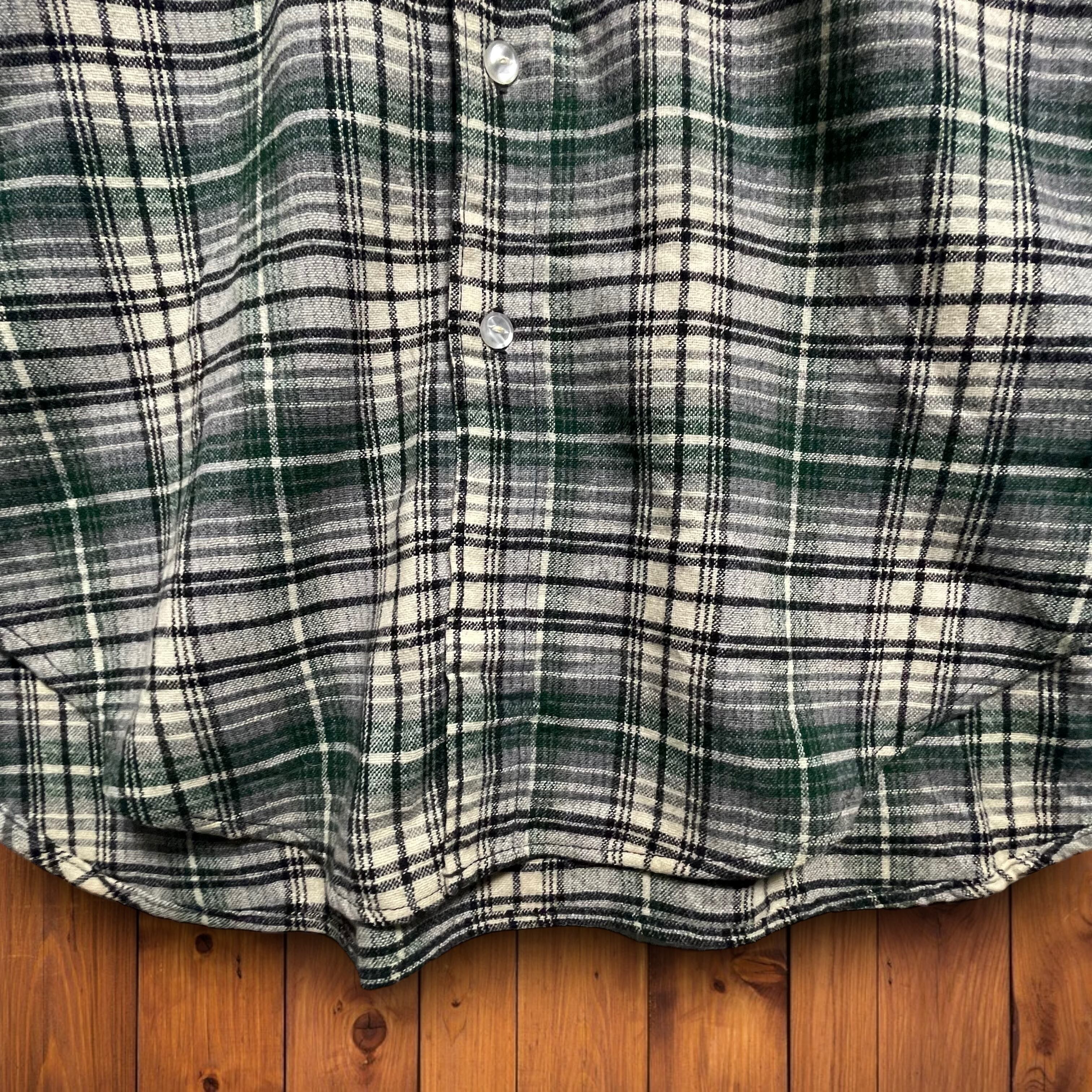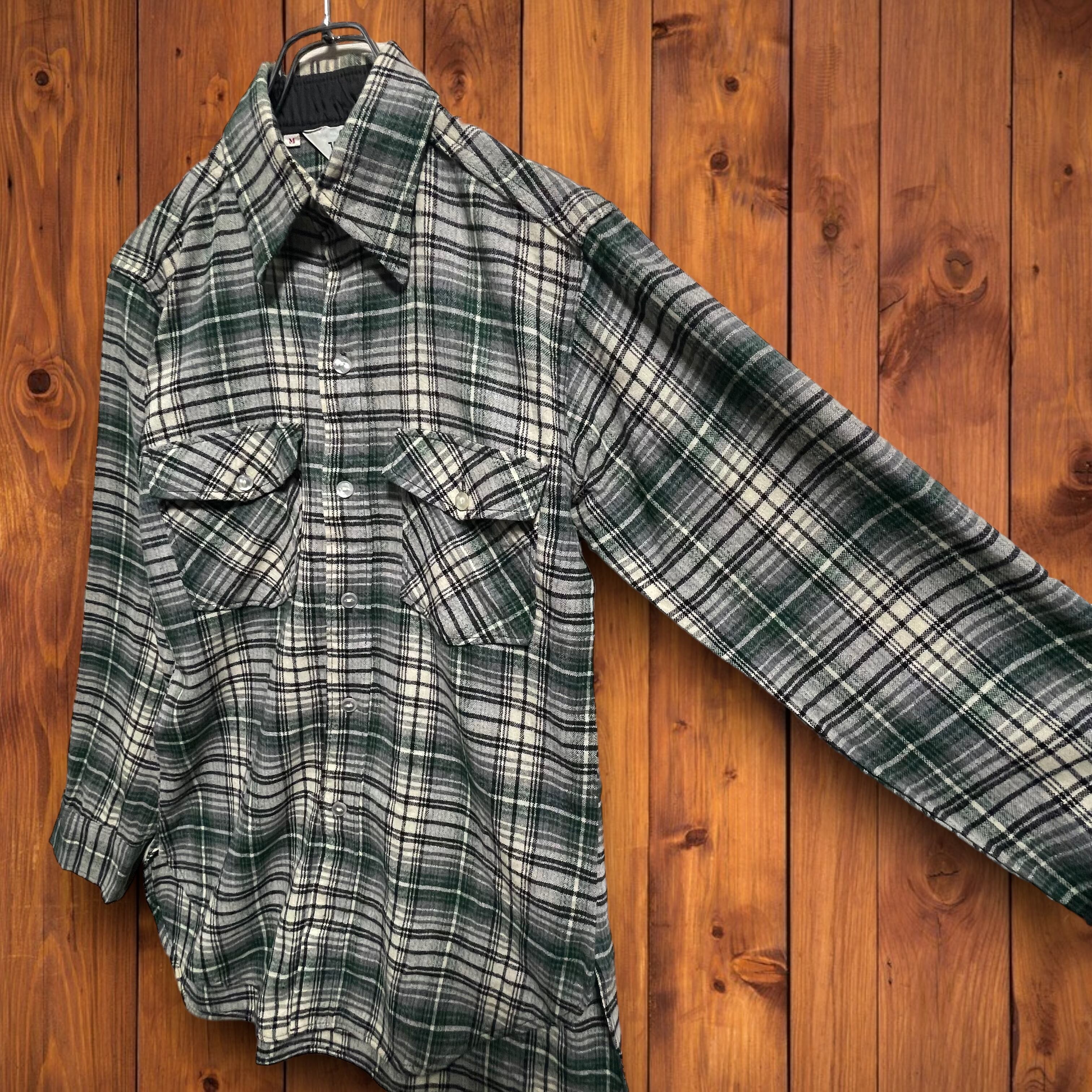 WOOLRICHウールリッチ 70sヴィンテージ チェック柄 ウール ネルシャツ グリーン M