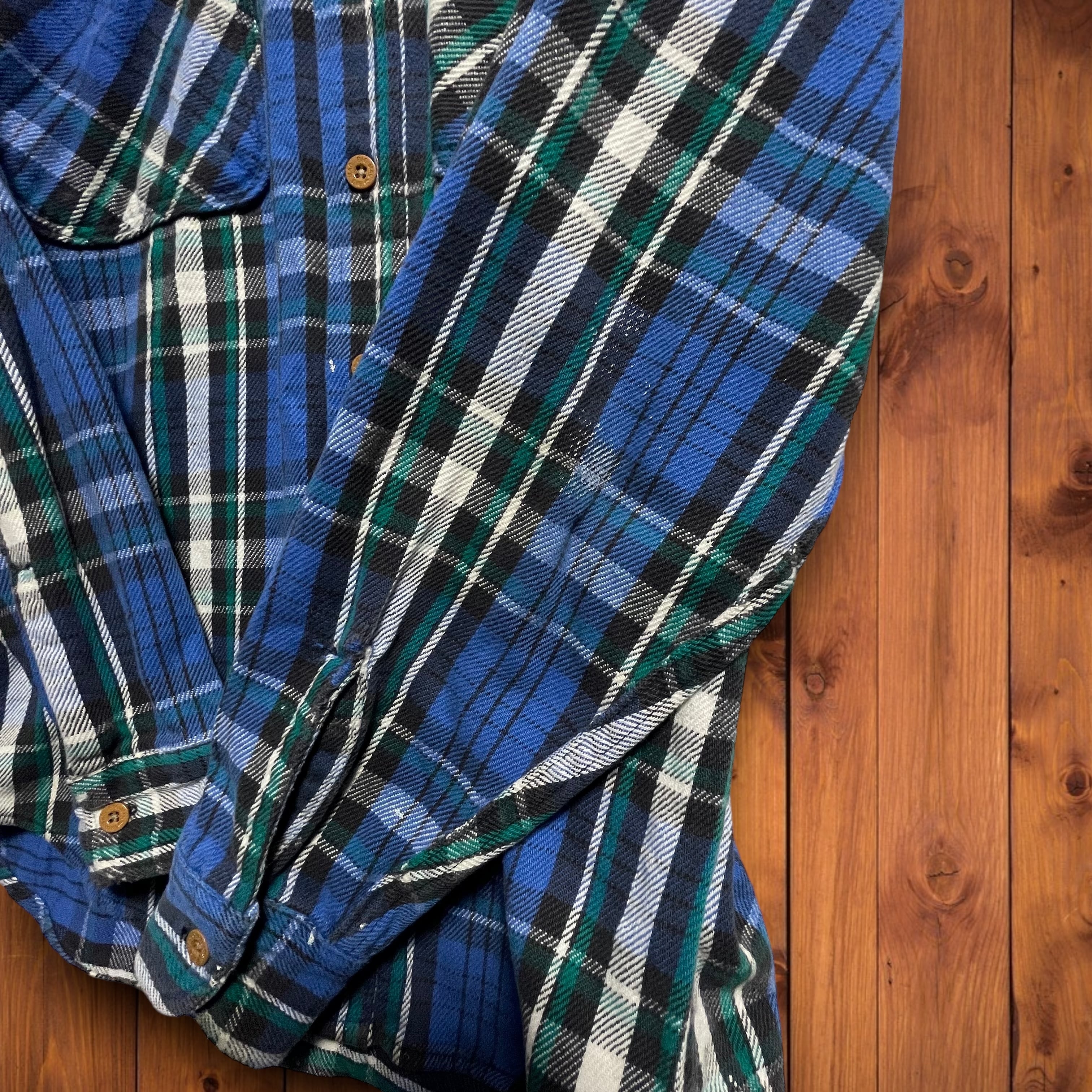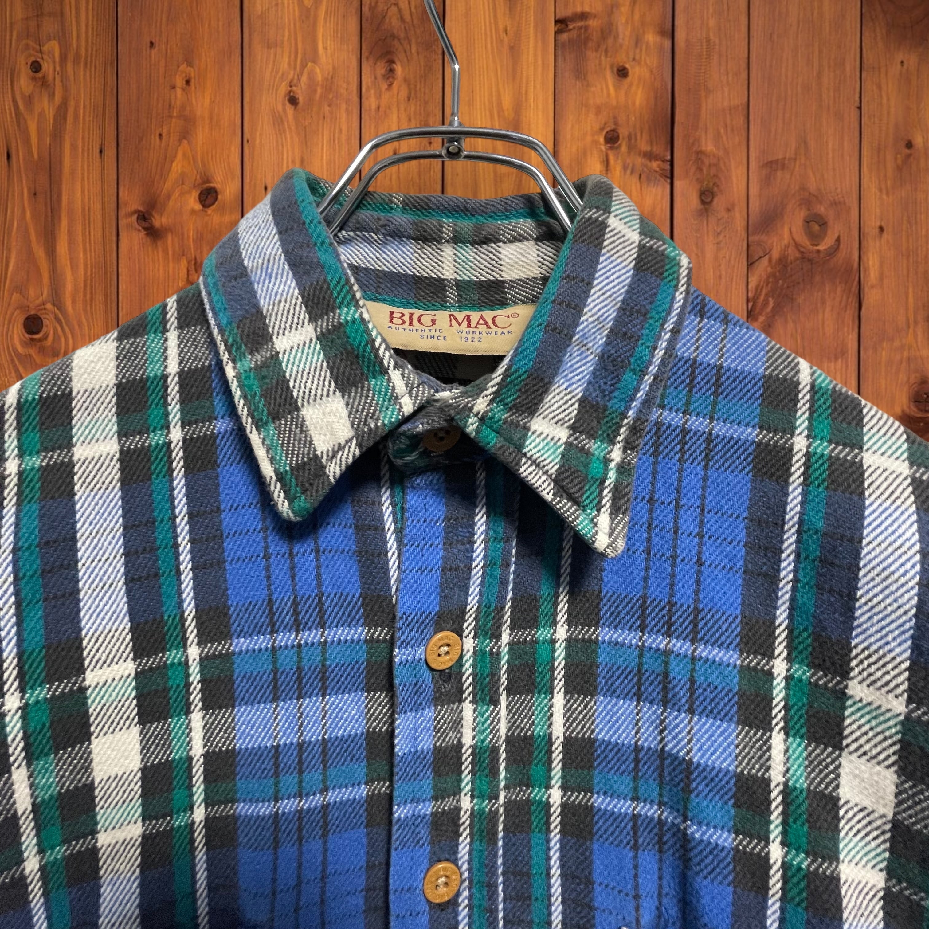 BIGMACビッグマック 80sヴィンテージ USA製 肉厚 コットン チェック 長袖シャツ ブルー M