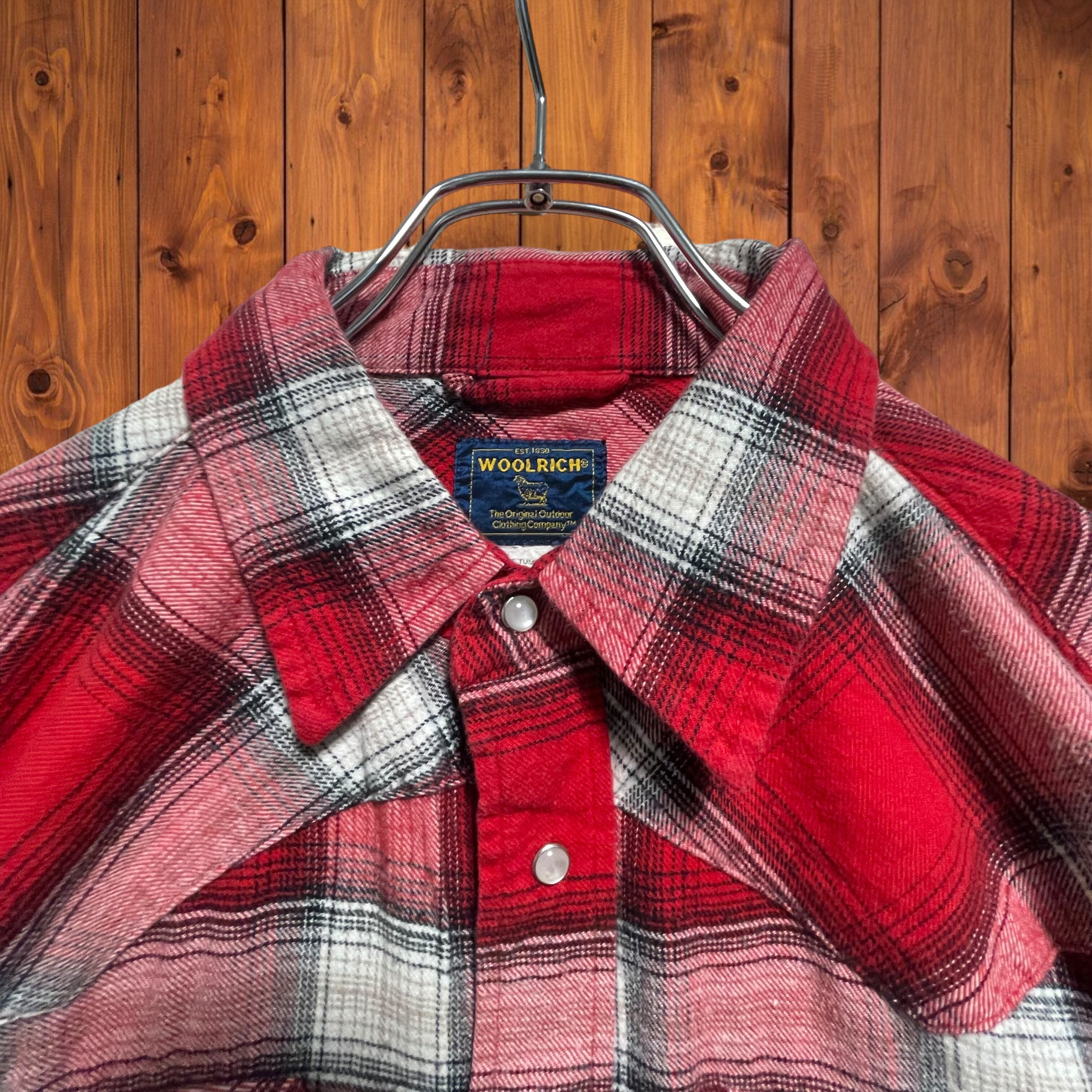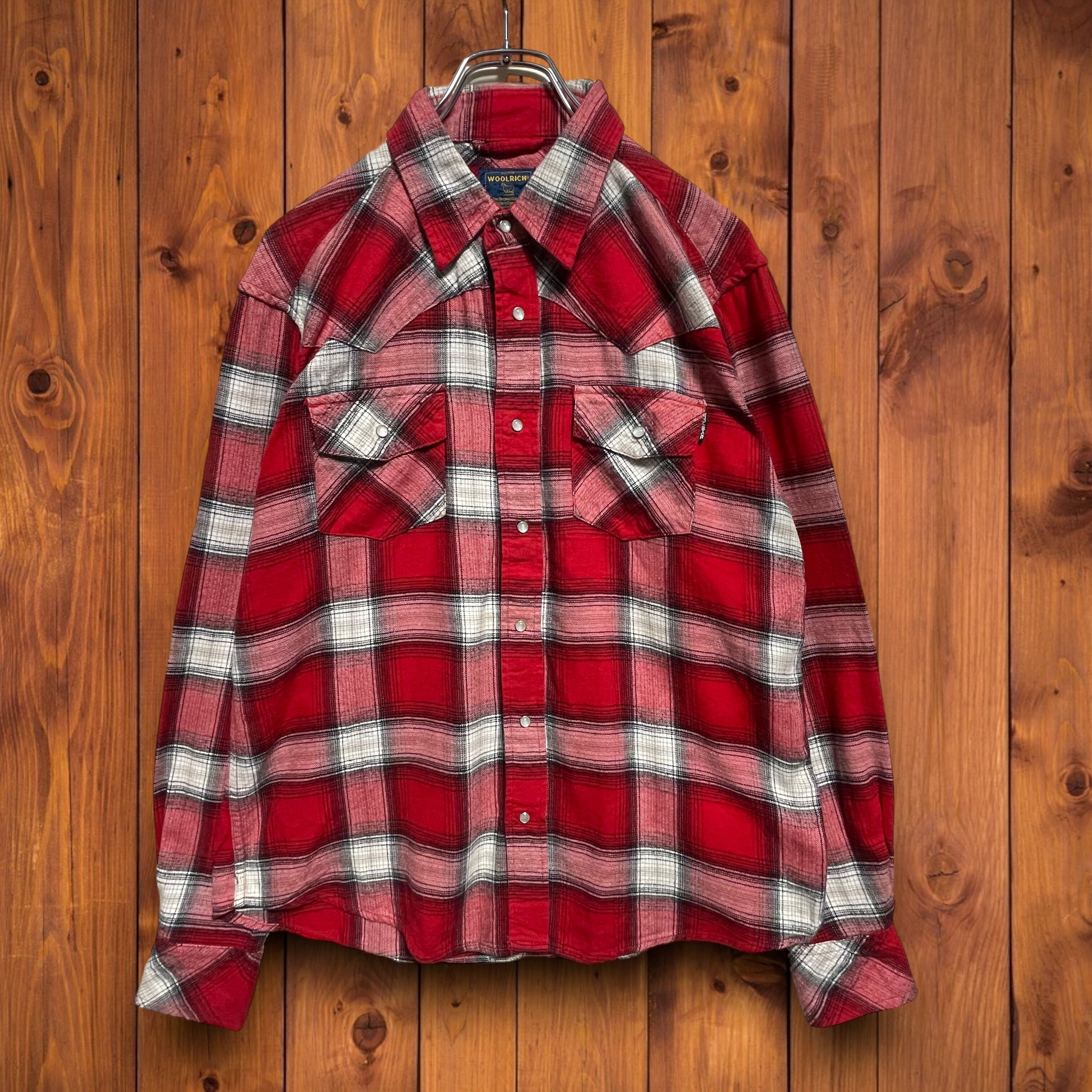 WOOLRICHウールリッチ チェック柄 コットン 長袖ウエスタンシャツ レッド ホワイト L