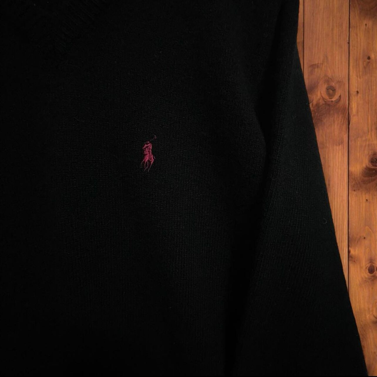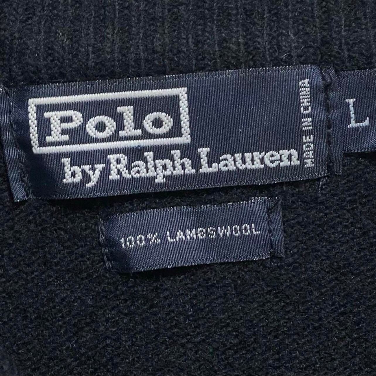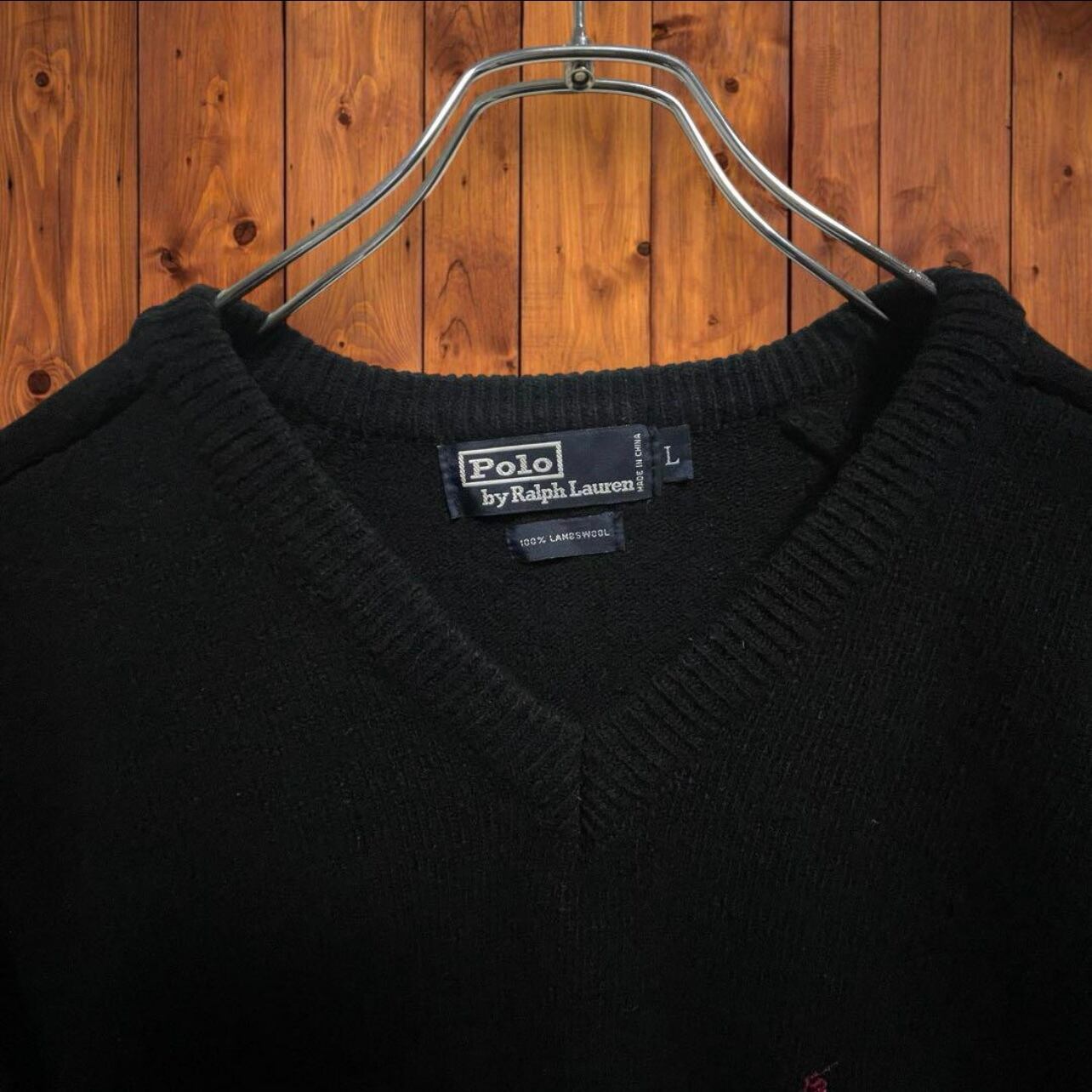 POLO Ralph Laurenポロラルフローレン 刺繍ロゴ ワンポイント Vネック ニット ブラック L