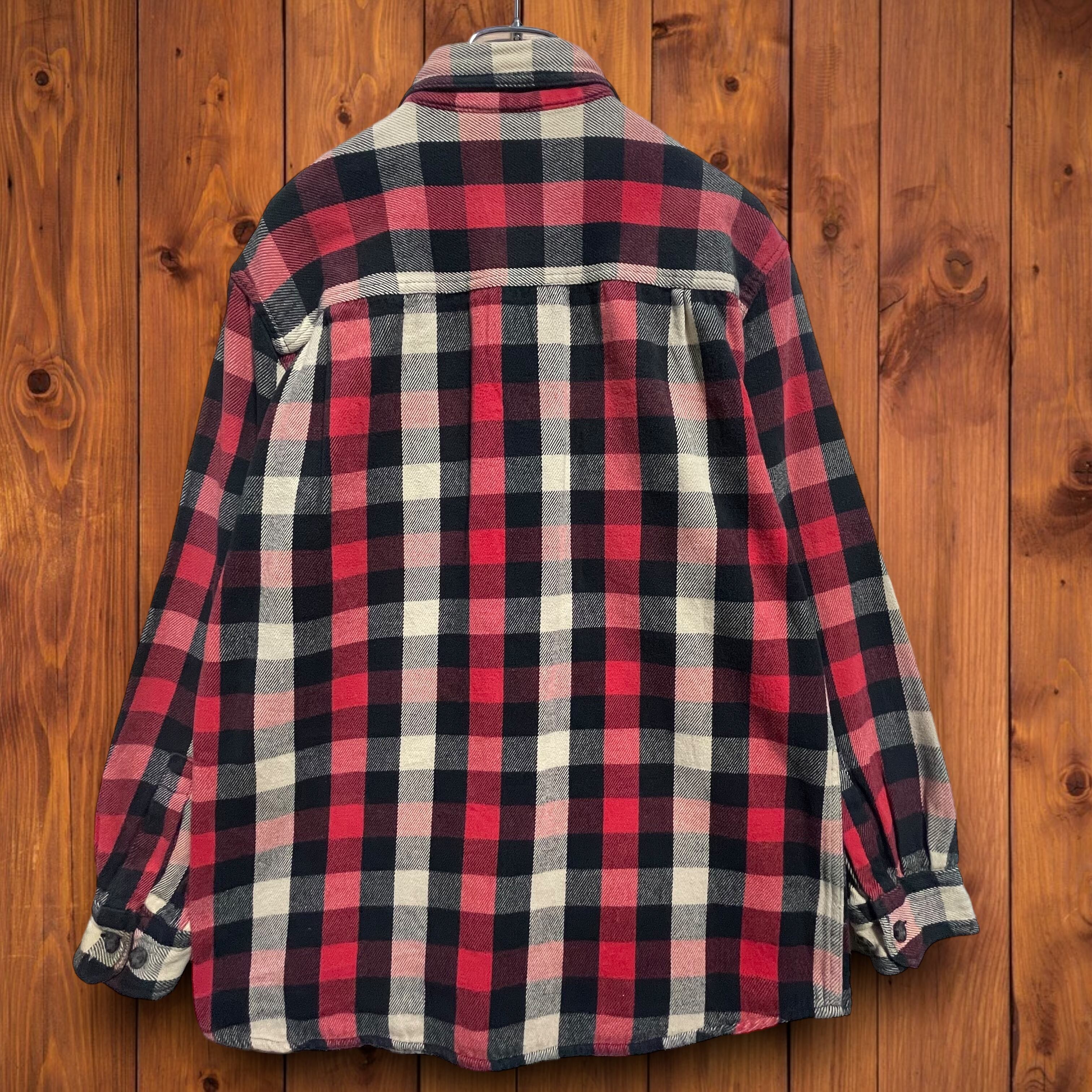 WOOLRICHウールリッチ パッチロゴ 厚手生地 チェック柄 長袖シャツ レッド ブラウン M
